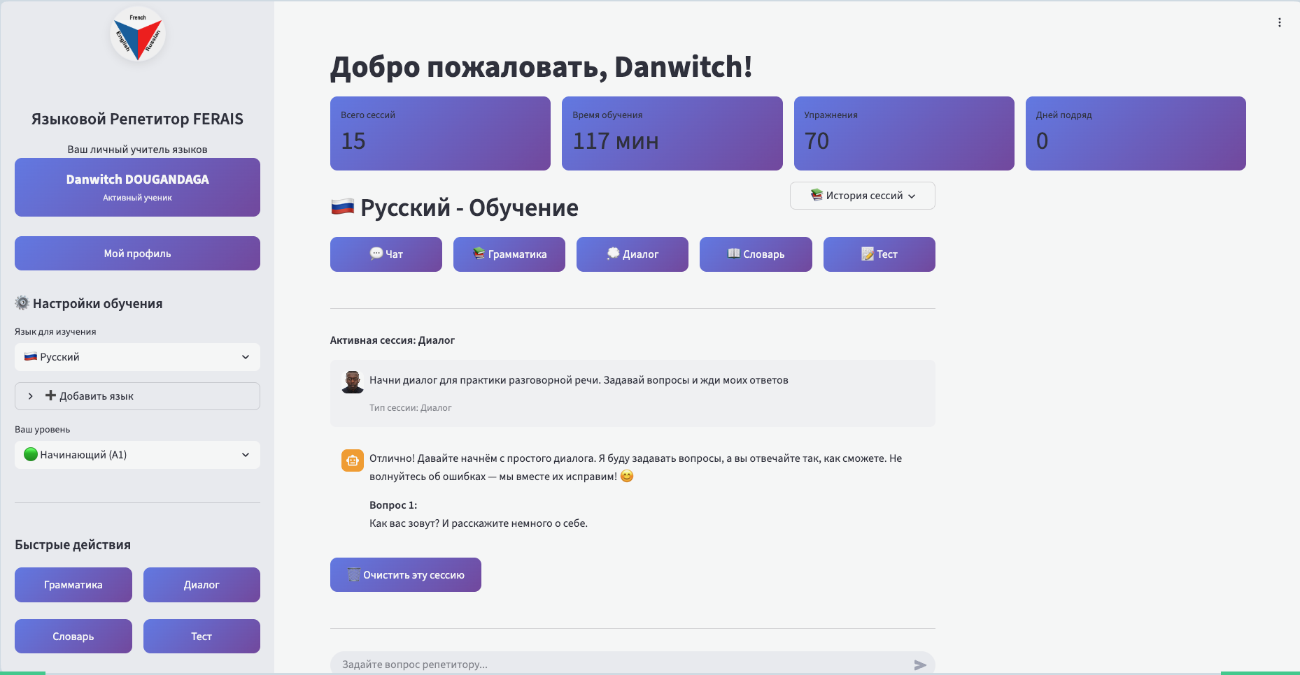 1. Выберите цель — для ребенка, работы, путешествий 2. Определите уровень — от начального до продвинутого 3. Общайтесь с AI — говорите и получайте ответы 4. Следите за прогрессом — достигайте новые уровни